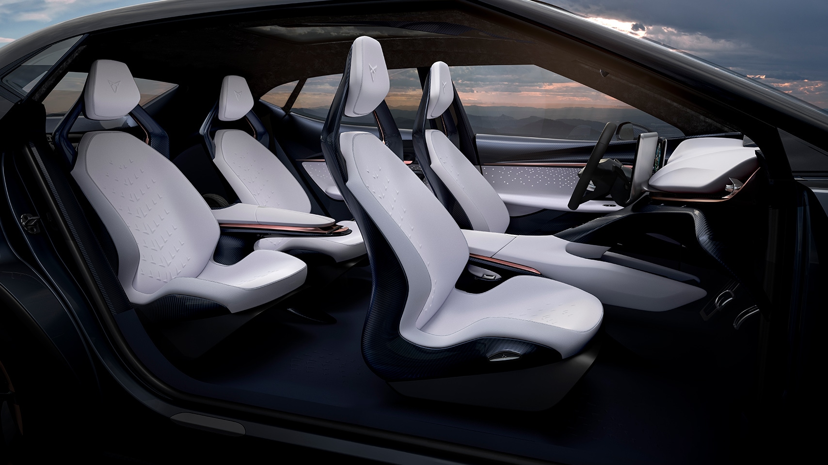 Le concept-car CUPRA associe une peinture liquide métal sophistiquée qui souligne et accentue son design extérieur, avec de la fibre de carbone ton sur ton et des détails raffinés en cuivre qui soulignent son style expressif.